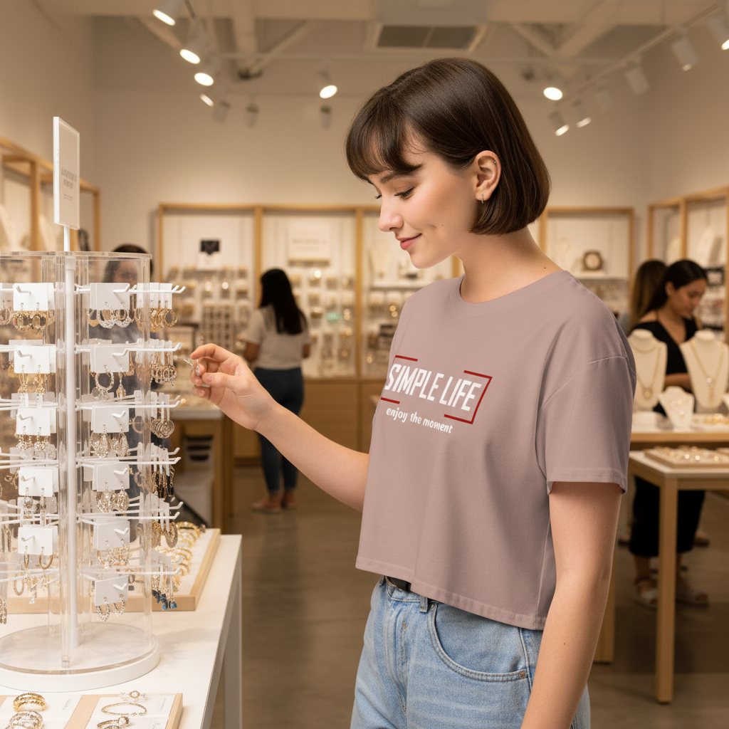 This crop top is made of 100% combed cotton, which makes the shirt extremely soft and more durable than regular cotton shirts. The relaxed fit and dropped shoulders ensure comfortable wear, while the cropped length makes it perfect for spring and summer.